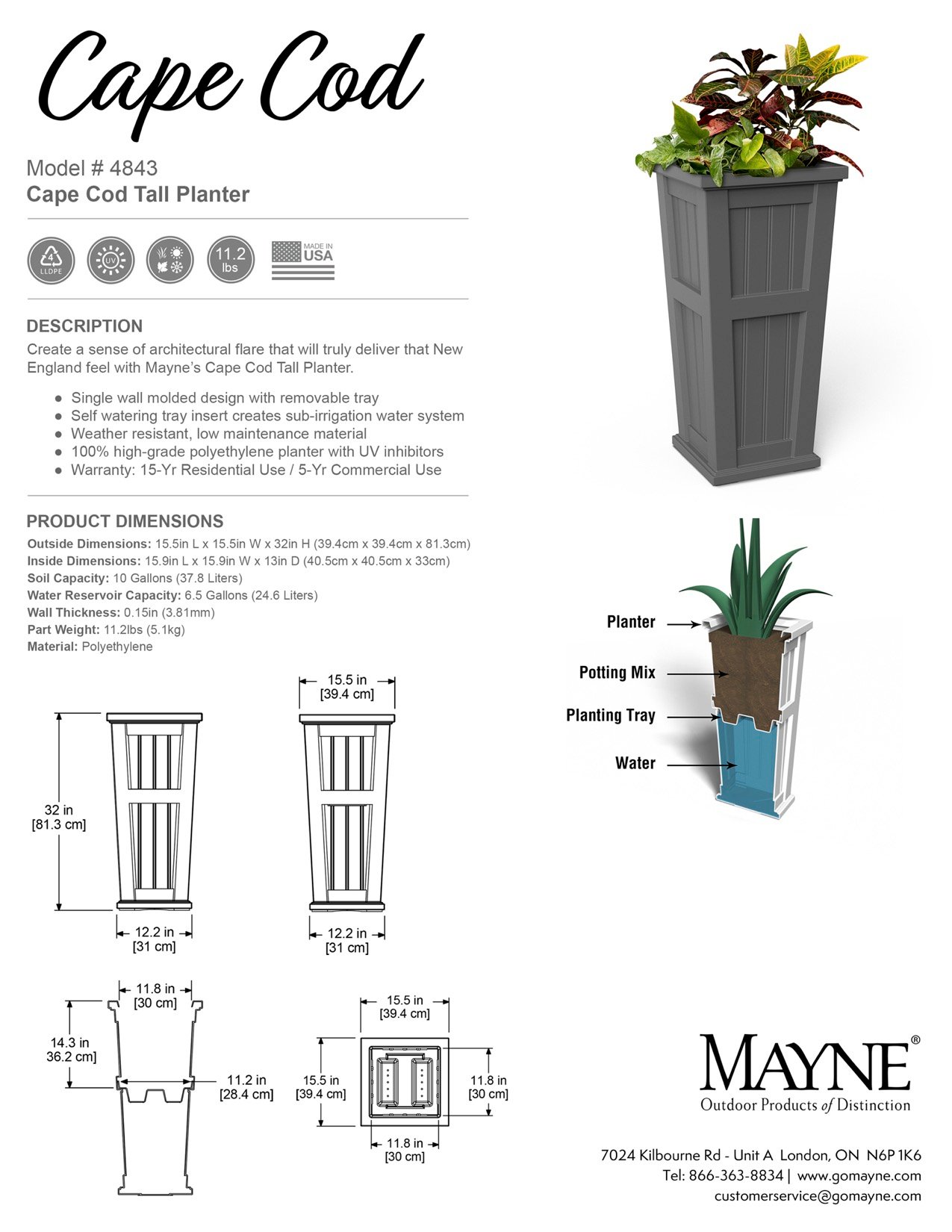 Cape Cod 32in Tall Planter - Instructions & DimensionsUpdated a month ago4843_Cape Cod_Planter_SpecSheet.pdf913.9KB4843_Cape Cod_Planter_Instruction.pdf1.2MB Was this article helpful? YesNo