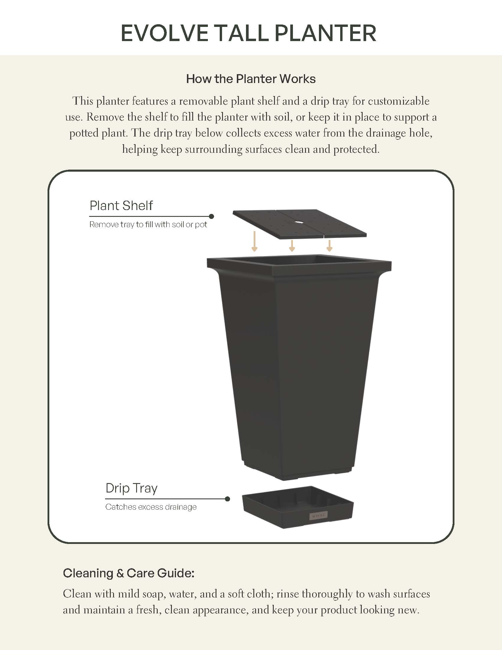 Evolve/Renew 24in Tall Planter - InstructionsUpdated a month agoEvolve Tall Planter Instruction Sheet.pdf512.7KB Was this article helpful? YesNo