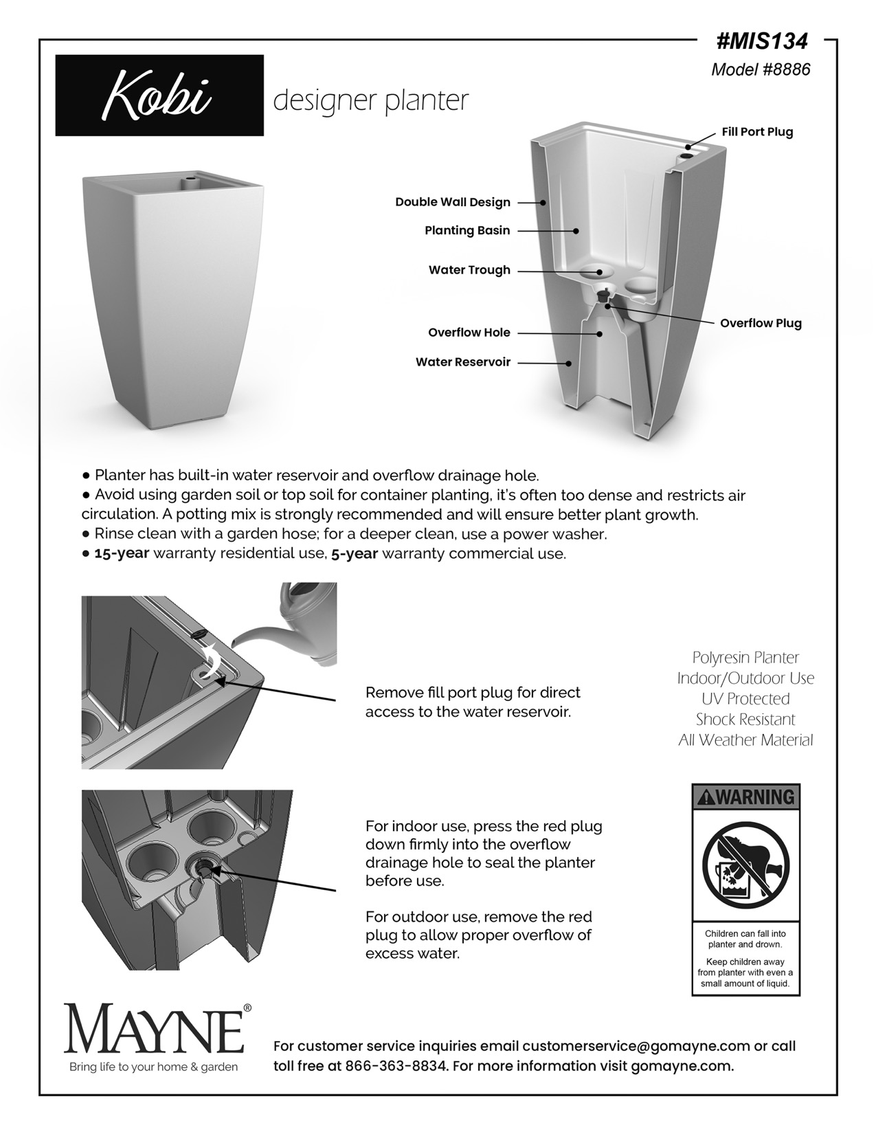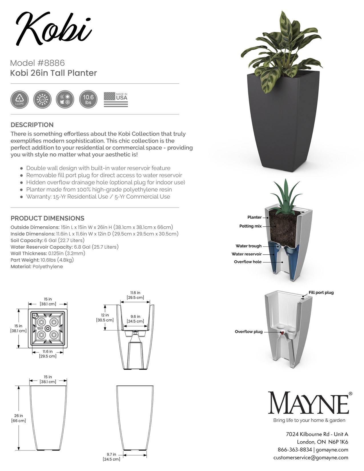 Kobi 26in Tall Planter - Instructions & DimensionsUpdated 10 days ago8886-B_Kobi_Planter_SpecSheet.pdf896.4KB8886-B_Kobi_Planter_Instruction.pdf811.1KBSKU: 8886 Was this article helpful? YesNo