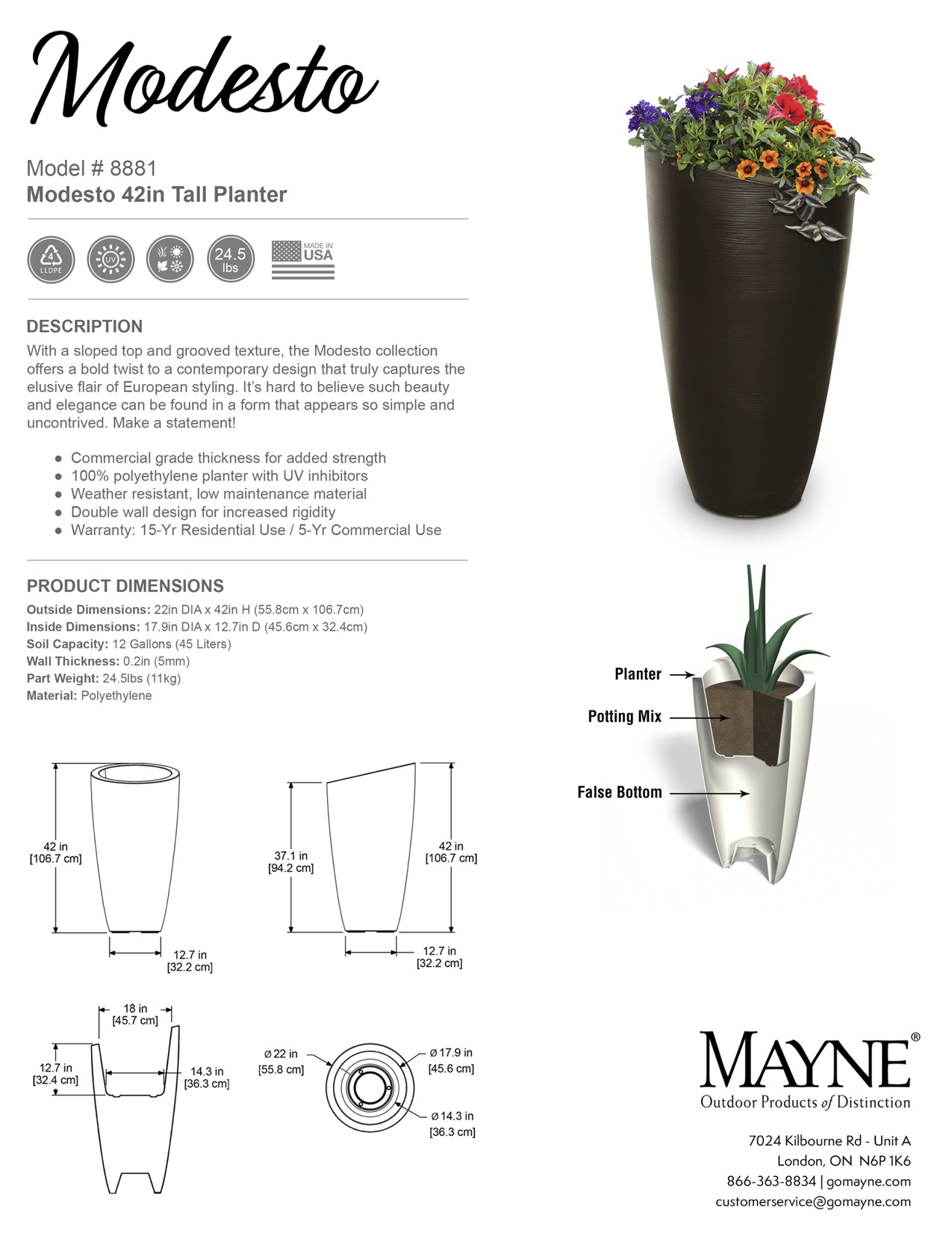 Modesto 42in Tall Planter - Instructions & DimensionsUpdated 10 days ago8881_Modesto_Planter_SpecSheet.pdf975.7KB8881_Modesto_Planter_Instruction.pdf1.5MBSKU: 8881 Was this article helpful? YesNo