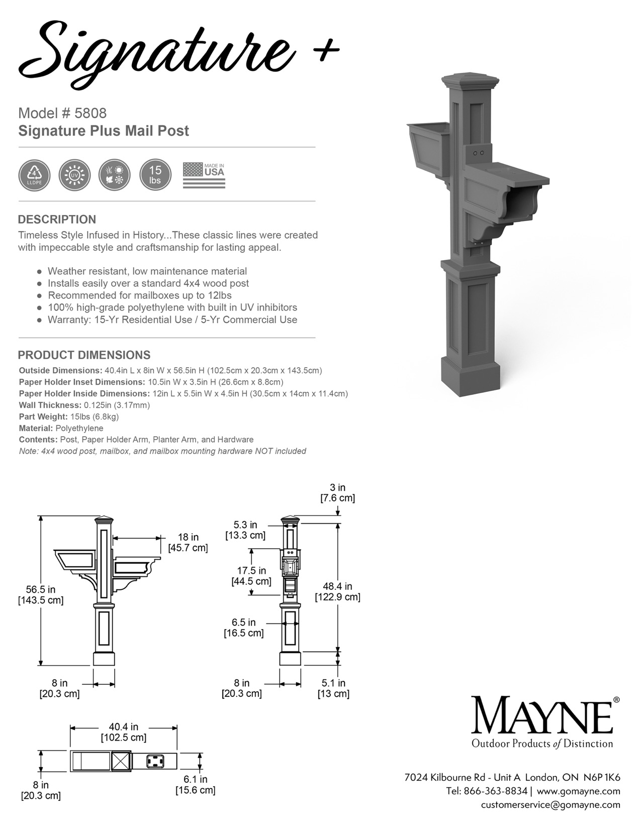 Signature Plus Mail Post - Instructions & DimensionsUpdated 10 days ago5808_SignaturePlus_MailPost_SpecSheet.pdf680.3KB5808_SignaturePlus_MailPost_Instruction.pdf1.4MBSKU: 5808 Was this article helpful? YesNo